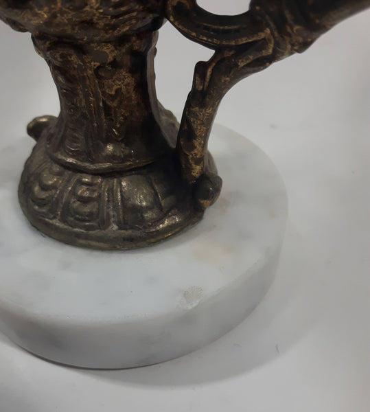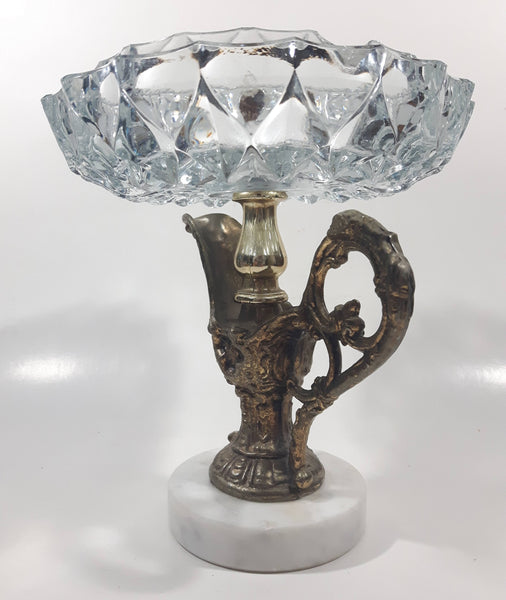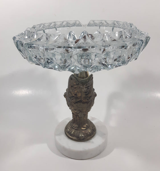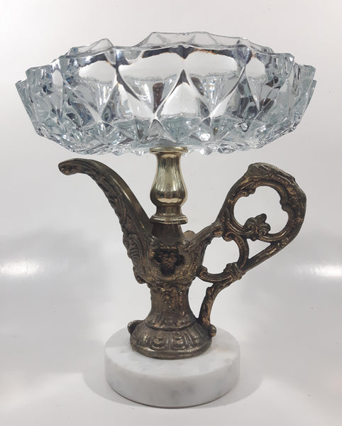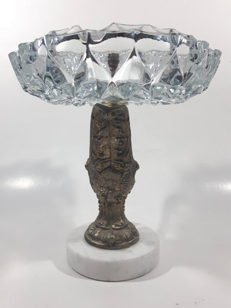 Vintage Crystal Cut Glass Brass Metal Water Pitcher Marble Pedestal 7 1/2" Tall Ash Tray