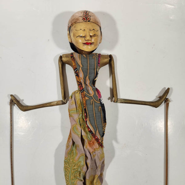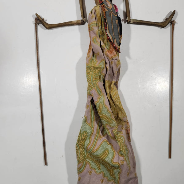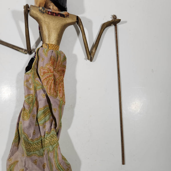 Antique Indonesian Wayang Golek 24" Hand Made Wood Theater Puppet In Traditional Batik Clothing