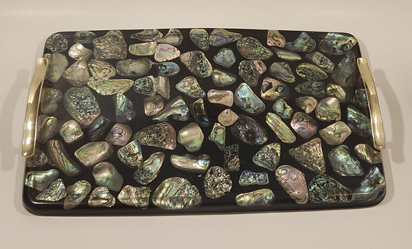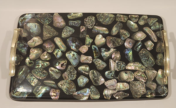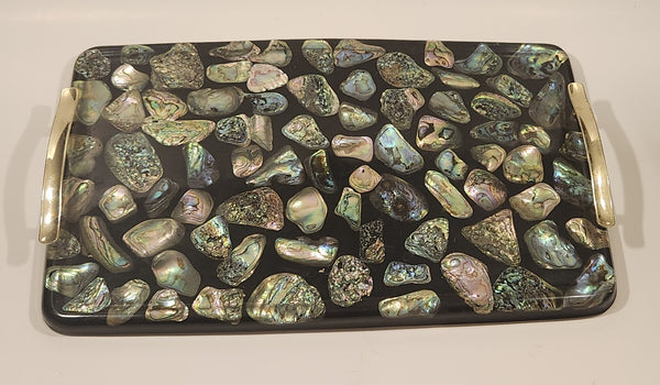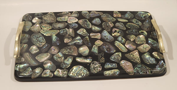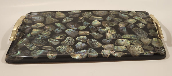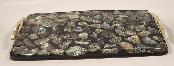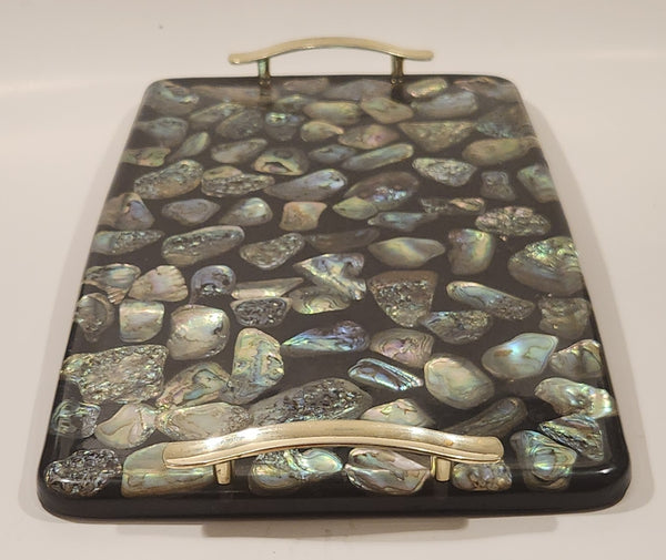 Vintage MCM Abalone Mother of Pearl 14" Serving Tray with Brass Handles