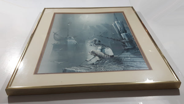 Vintage Andres Orpinas Young Girl on Dock 16 1/4" x 20 1/2" Framed Painting Print