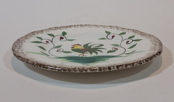 1950s Napco Brown Speckled Edged Handpainted Rooster Chicken with Vines Teacup Saucer Plate