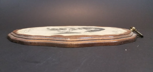 The advertisement has burnt edges and is on a beautiful wood plaque with decorative hanger. Some minimal surface scratching but otherwise in great condition for a 19th Century rare antique.