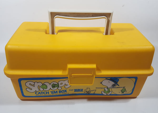 Vintage 1965 Zebco United Features Syndicate Peanuts Snoopy Catch 'Em Box Yellow Plastic Fishing Tackle Box