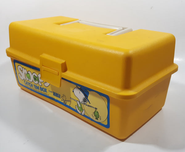 Vintage 1965 Zebco United Features Syndicate Peanuts Snoopy Catch 'Em Box Yellow Plastic Fishing Tackle Box