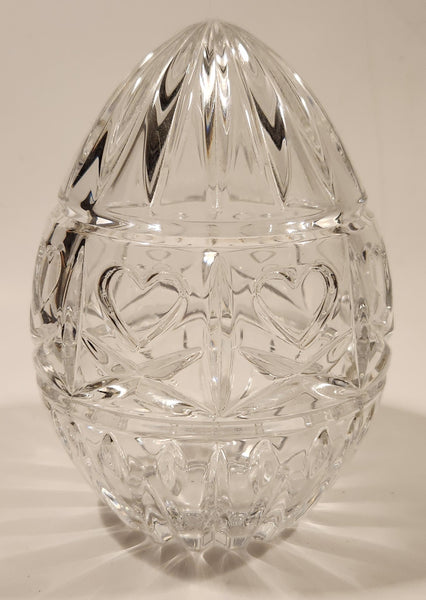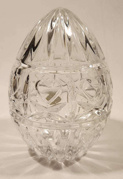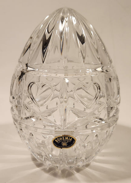 Vintage Bohemia Czech Republic 5 1/2" Heart Themed Cut 24% Leaded Crystal Glass Egg