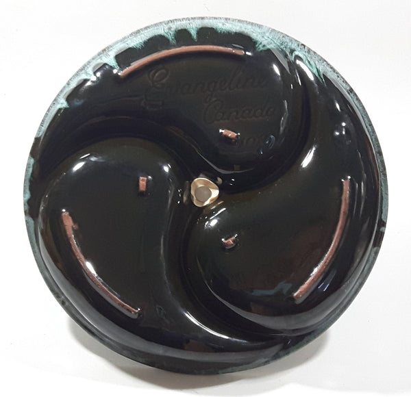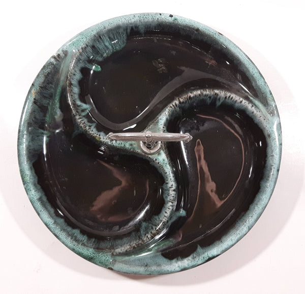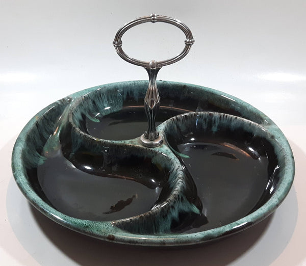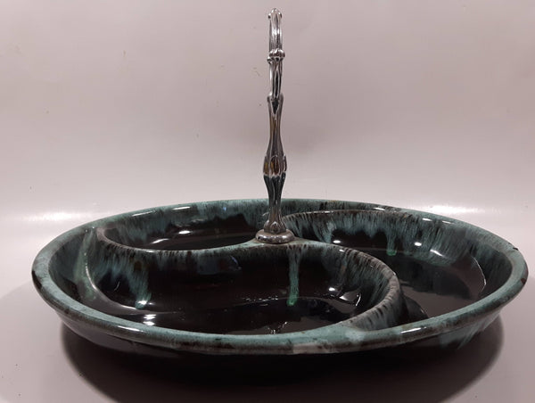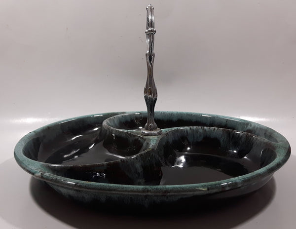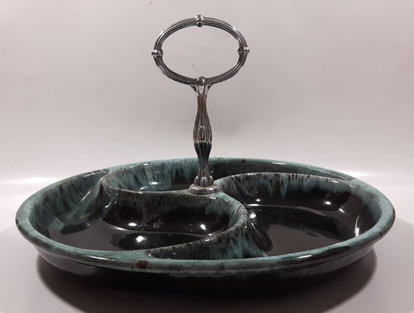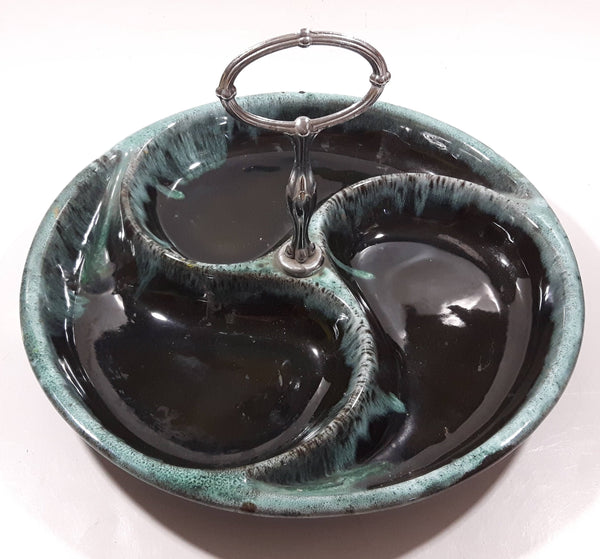 Vintage Evangeline Canada Pottery 11" Diameter Drip Glaze Three Compartment Serving Platter Dish with Handle