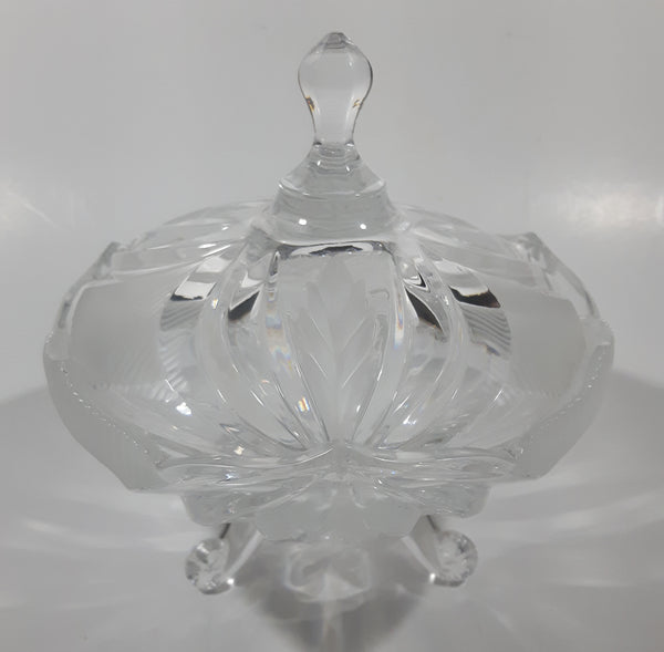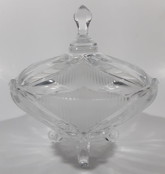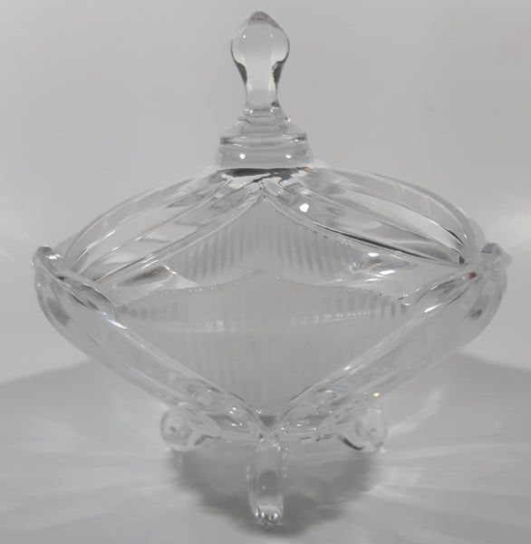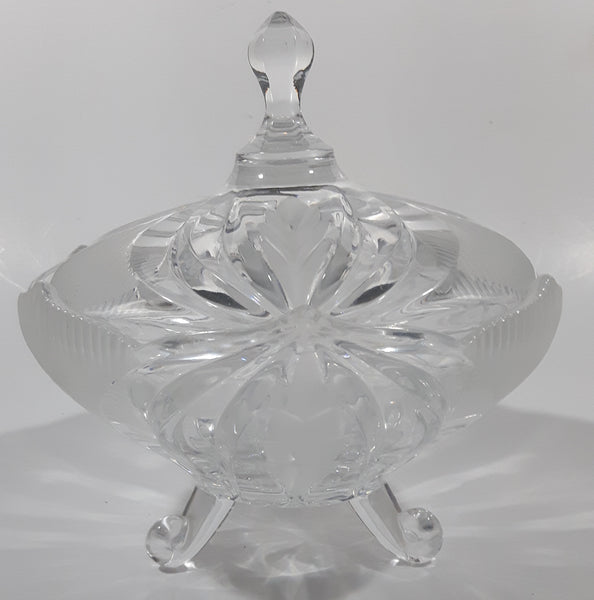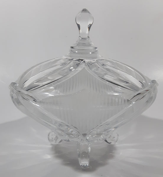 Vintage Hand Cut 24% Leaded Crystal Glass 5 3/4" Tall Tri-Footed Candy Dish Bowl with Lid Made in Yugoslavia