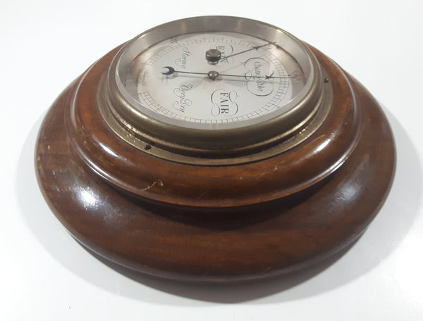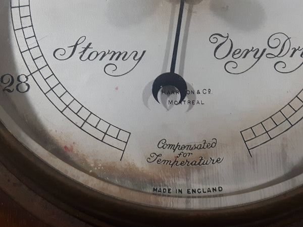 Antique Harrison & Co Montreal Round Heavy Wood Cased Barometer Weather Station Made in England