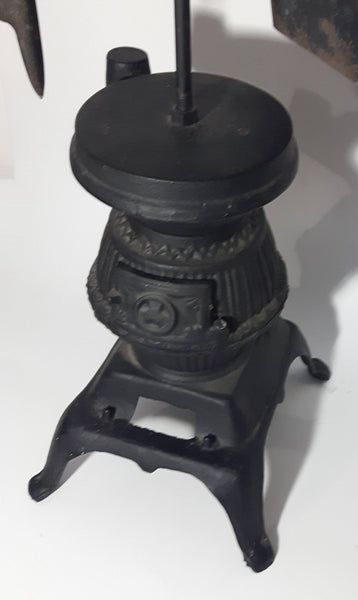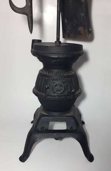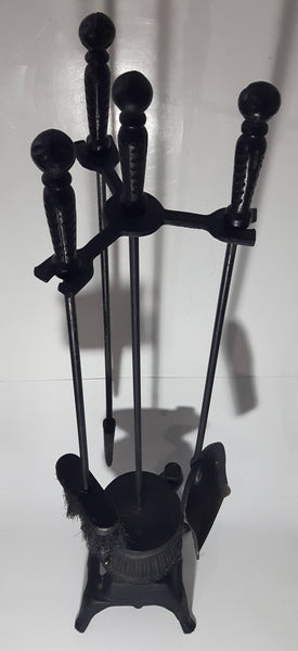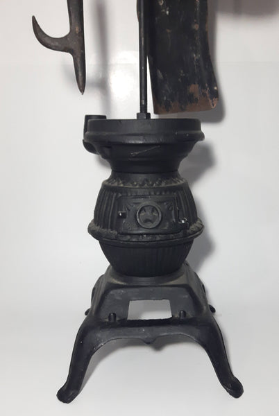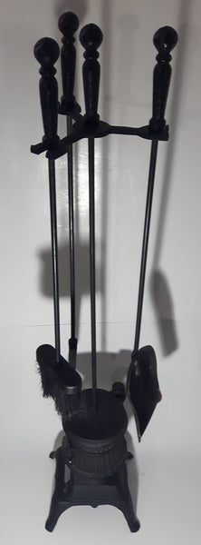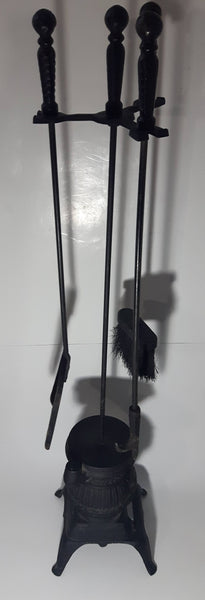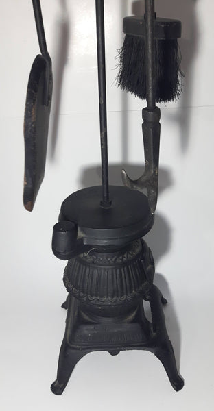 Antique Ornate Pot Belly Stove Shaped Cast Iron Fire Place Tool Set 38 1/2" Tall