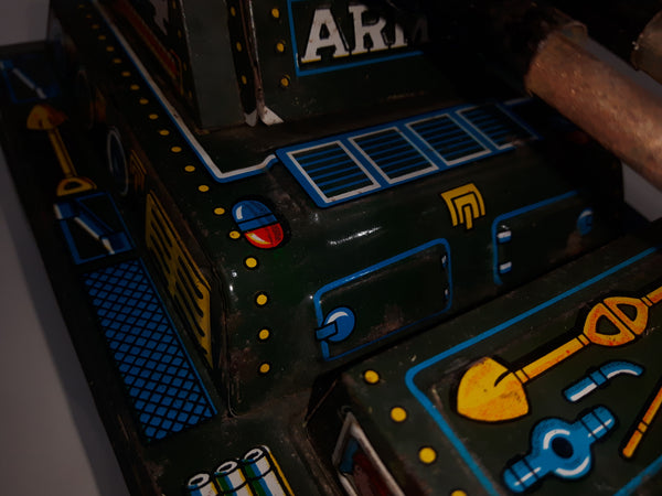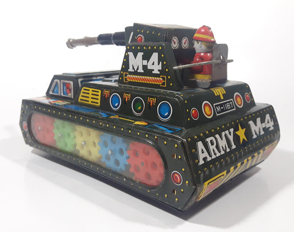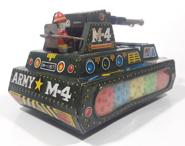 Extremely Rare Vintage c. 1967 Mihashi M-4 Sherman Tank Friction Tin Toy Military Vehicle 7 3/4" Long