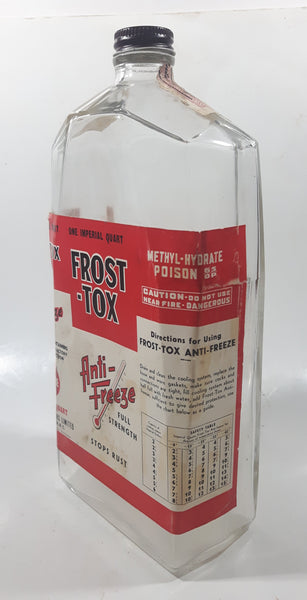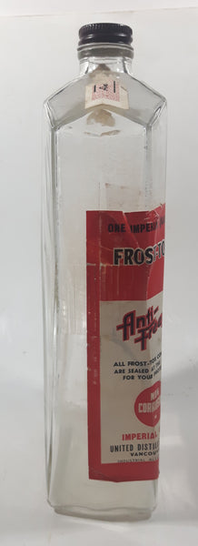 Rare Antique 1940s WWII Era United Distillers Limited Vancouver, B.C. Frost-Tox Anti-Freeze One Imperial Quart 10" Tall Glass Bottle with Paper Label