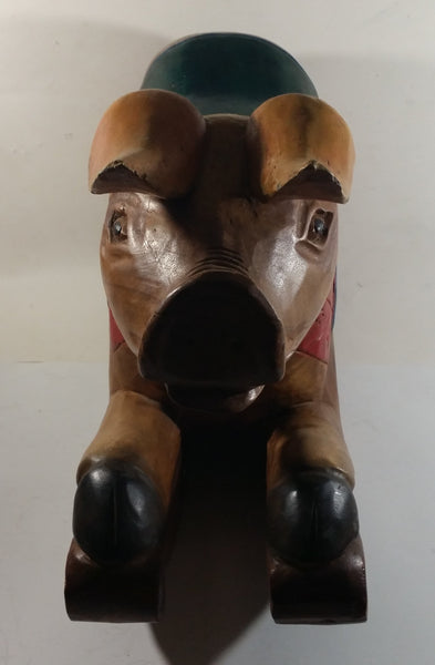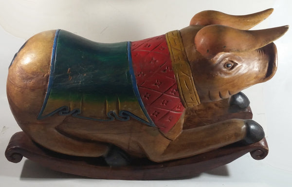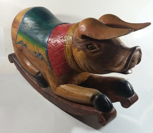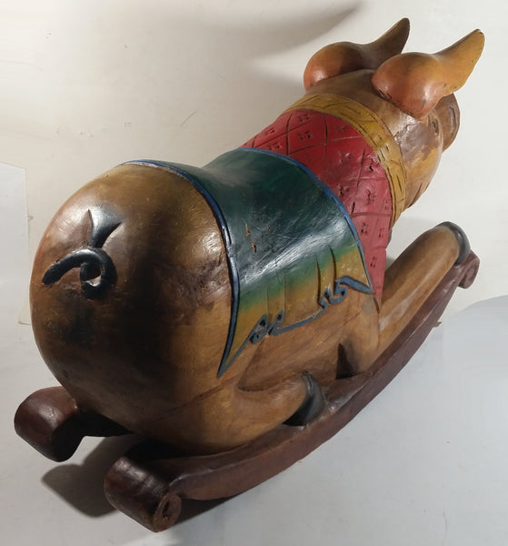 Vintage Super Rare Hand-carved Wooden Rocking Pig Made In Thailand