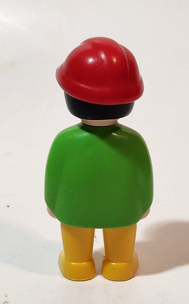 1990 Geobra Playmobil Construction Worker Green Shirt Orange Vest Yellow Pants Red Hard Hat 3" Toy Figure