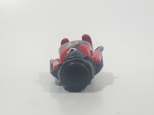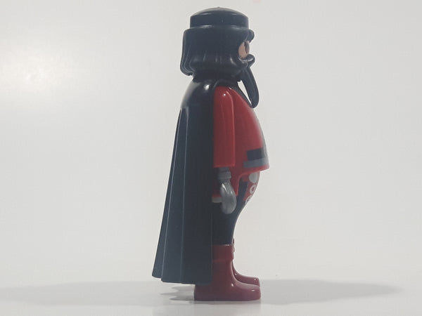 2004 Geobra Playmobil Pirate with Hook Hand Black Hair and Beard Red and Black Clothes Black Cape 2 3/4" Tall Toy Figure