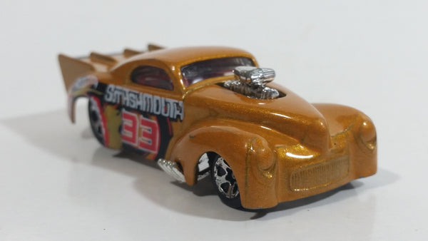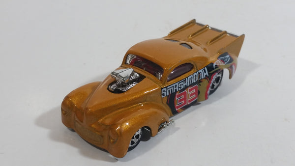 2004 Hot Wheels Smashville '41 Willys Smash Mouth Gold Die Cast Toy Hot Rod Car Vehicle