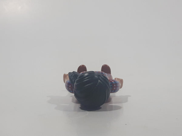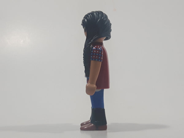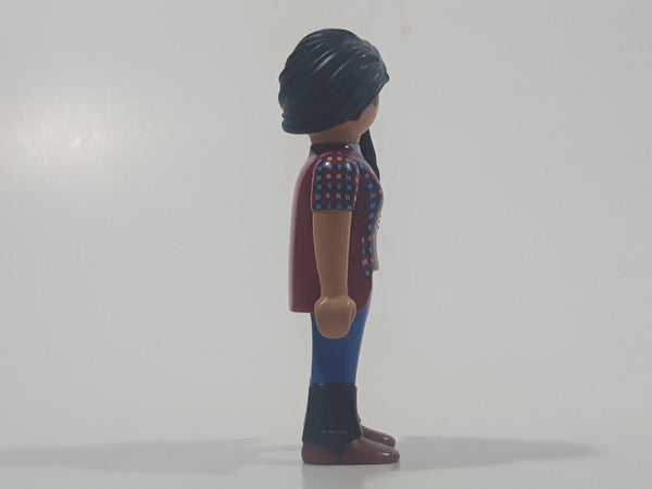 2011 Geobra Playmobil Black Braided Hair Woman with Blue Pants Dark Red Plaid Shirt 2 3/4" Tall Toy Figure