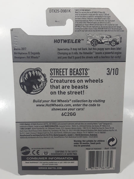 2017 Hot Wheels Street Beasts Rotweiler Dark Blue and White Die Cast Toy Car Vehicle New in Package