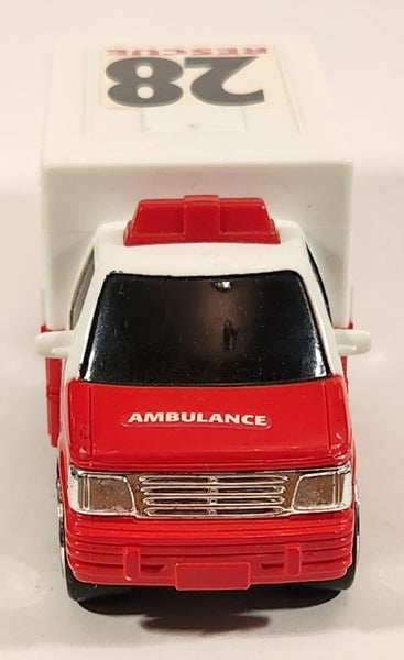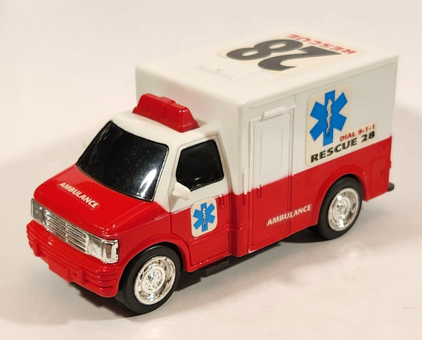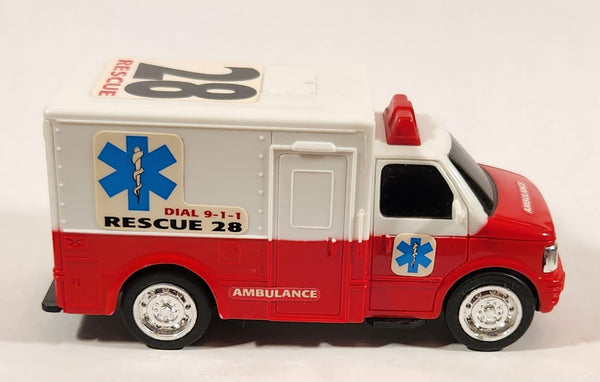 Ambulance #28 Rescue Red and White Plastic Push and Go Die Cast Toy Car Vehicle