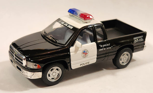 Kinsmart 2014 Dodge Ram 1500 Police #388 Pickup Truck Black and White Pull Back 1/44 Scale Die Cast Toy Car Vehicle with Opening Doors and Tail Gate