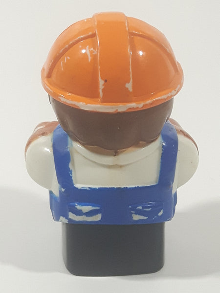 Mega Bloks My First Builders Construction Worker in Orange Hard Hat Wearing Black and Blue 3" Tall Plastic Toy Figure