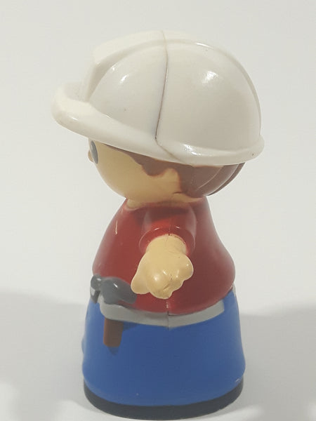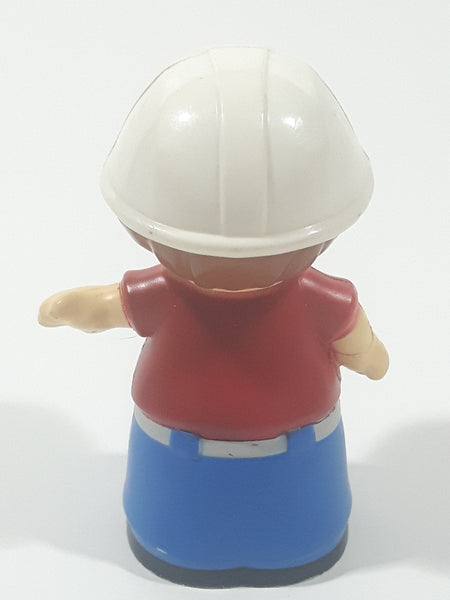 Mega Bloks My First Builders Construction Worker in White Hard Hat Wearing Red and Blue 3" Tall Plastic Toy Figure AM 13854