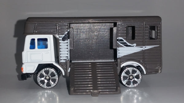 Motor Max No. 6037 Horse Box Truck Dark Grey Die Cast Toy Car Vehicle with Opening Side Door