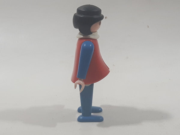 Vintage 1974 Geobra Playmobil Woman with Black Hair in Red Vest and Blue Clothes 2 7/8" Tall Toy Figure