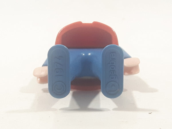 Vintage 1974 Geobra Playmobil Woman with Black Hair in Red Vest and Blue Clothes 2 7/8" Tall Toy Figure