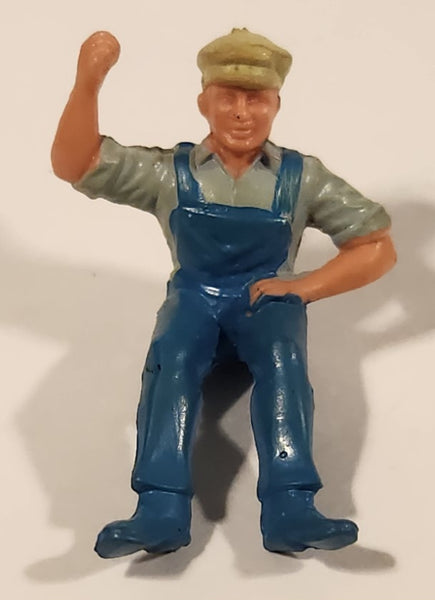 Vintage Sitting Farmer in Blue Overalls 1 3/4" PVC Toy Figure
