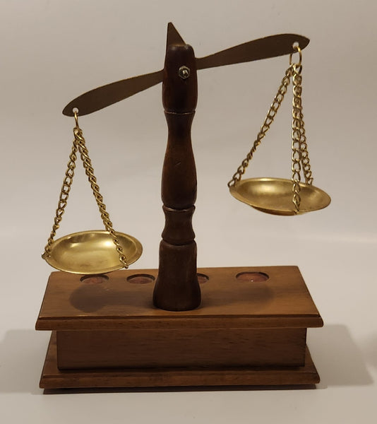 Vintage Wood Based Metal Dish Balance Weigh Scale