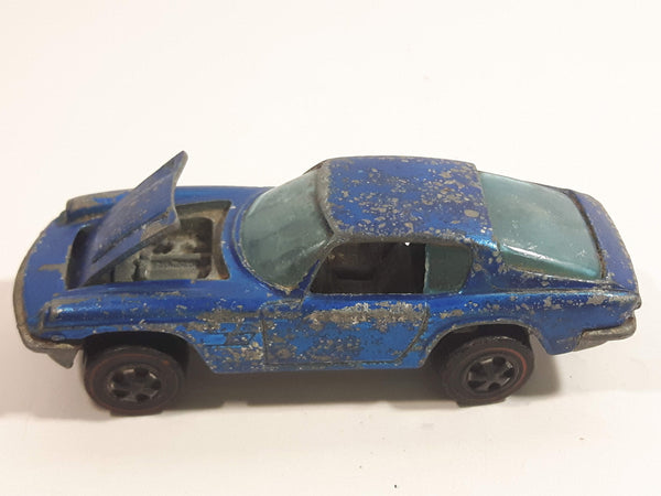 Vintage 1969 Hot Wheels Red Lines Maserati Mistral Spectraflame Blue Die Cast Toy Car Vehicle with Opening Hood