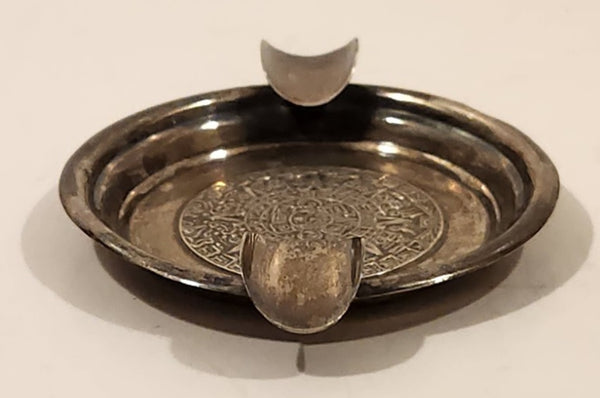 Vintage Mexican Mayan Calendar Two Slot .925 Sterling Silver Metal Cigarette Ashtray