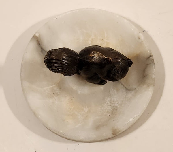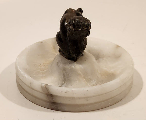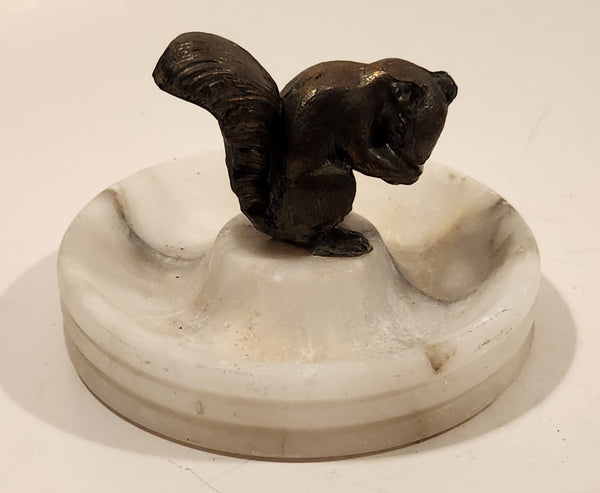Vintage Silver Look Metal Squirrel White Marble Ashtray Nut Dish