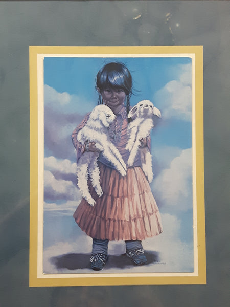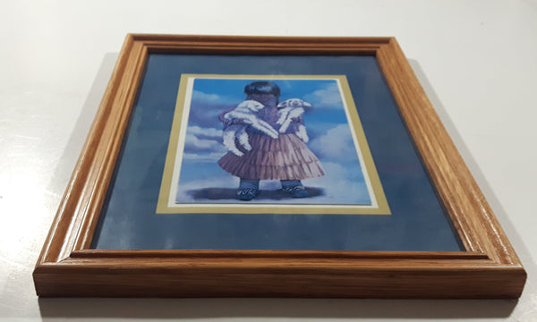1996 Penni Anne Cross Alawa-sta-we-ches First Nations Native Girl Holding Two White Lambs 9 3/4" x 12 1/4" Framed Greeting Card