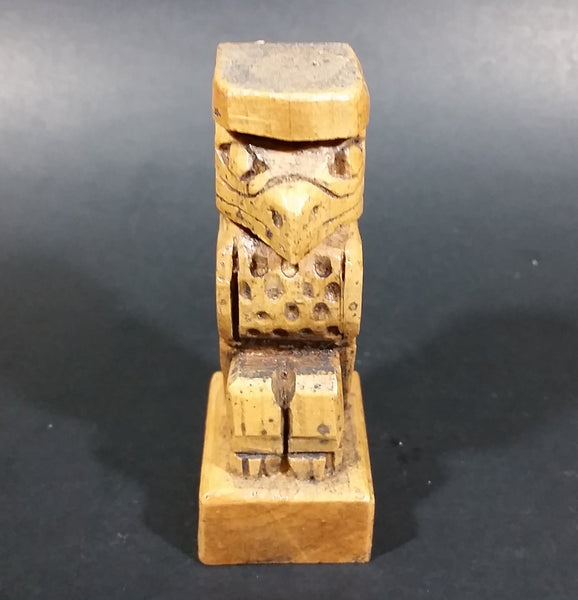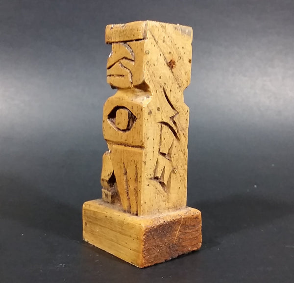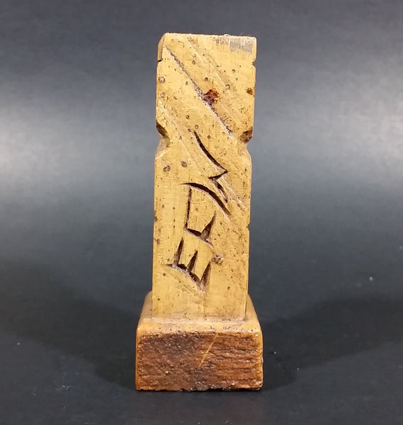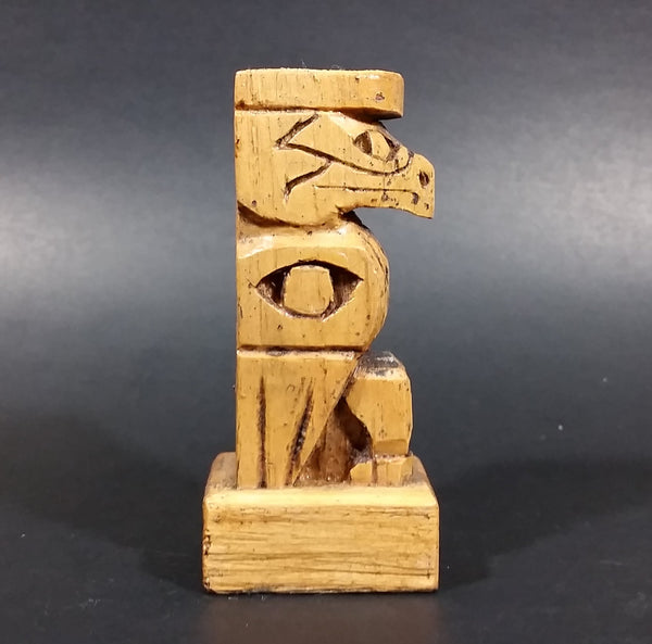 Pacific Northwest Aboriginal Small Glossed Eagle Carved 3 1/2" Wood Totem Pole Signed E.F.W.