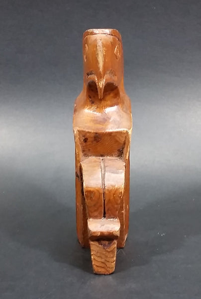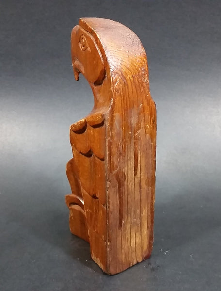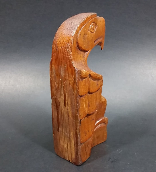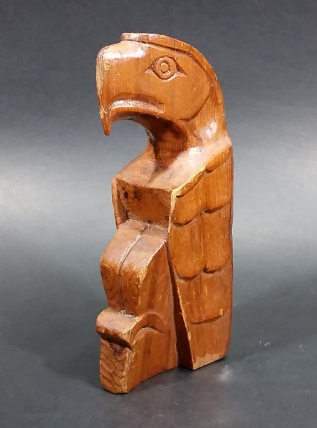 Pacific Northwest Aboriginal Small Glossed Eagle Carved 5 1/2" Wood Totem Pole Signed E.F.W.