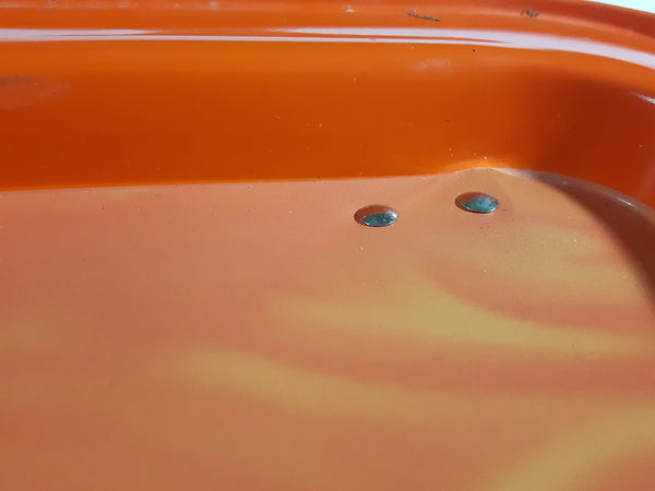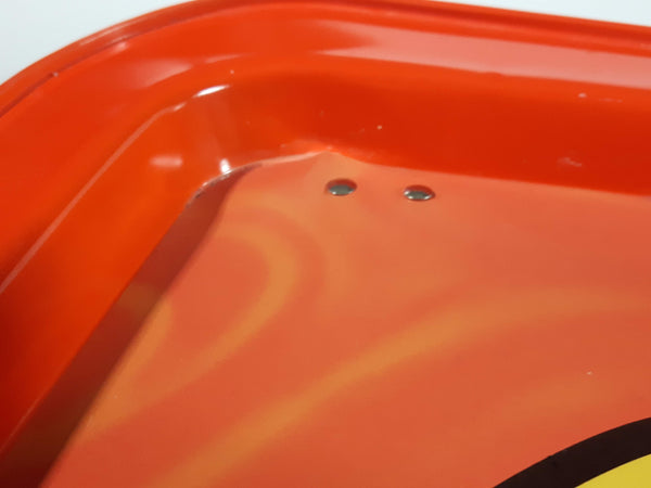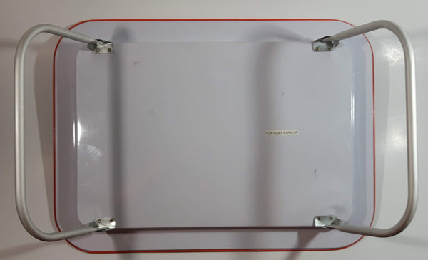 Very rare promotional TV dinner or snacks tray with folding legs. Has a sticker on the bottom that reads "Ages 4 and up".