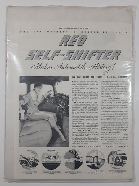 1933 The Saturday Evening Post Reo Self-Shifter 10 1/4" x 13 5/8" Magazine Print Ad