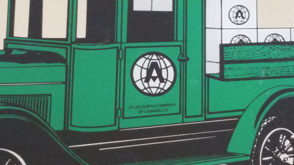 1990 Atlas Supply Company 60th Anniversary 1930 - 1990 Green Delivery Truck Wooden Framed Glass Mirror Advertisement Automotive Collectible 19" x 15"