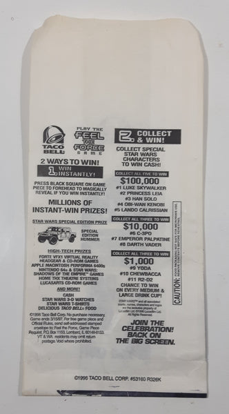 1996 Taco Bell Special Edition The Star Wars Trilogy Join The Celebration! Back On The Big Screen Paper Takeout Bag