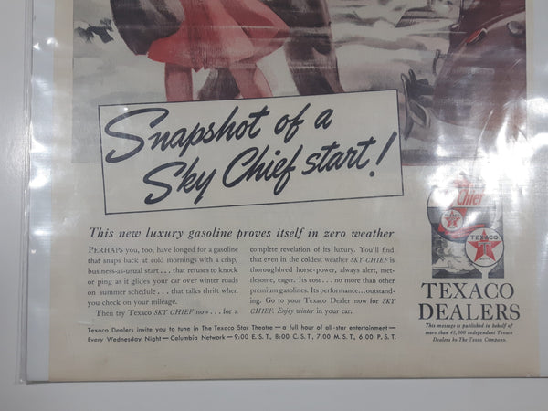 Vintage 1940 Texaco Dealers "Snapshot of a Sky Chief start!" Winter 10 1/8" x 13 1/2" Paper Advertisement