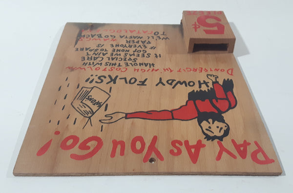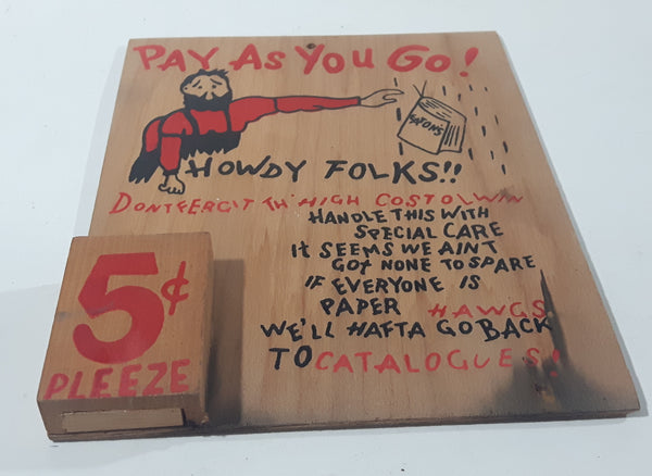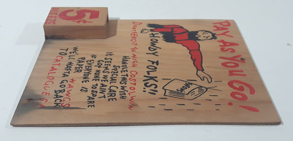 Vintage Eaton's Pay As You Go! Howdy Folks!! 5 Cents Pleeze 5 3/4" x 7 1/4" Wood Sign