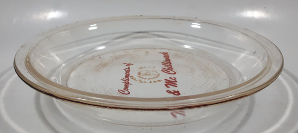 Vintage Pyrex 208 8 1/4" Clear Glass Pie Plate Compliments of Mc & Mc Chilliwack Made in U.S.A.