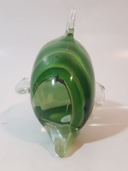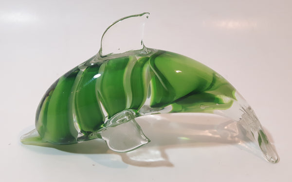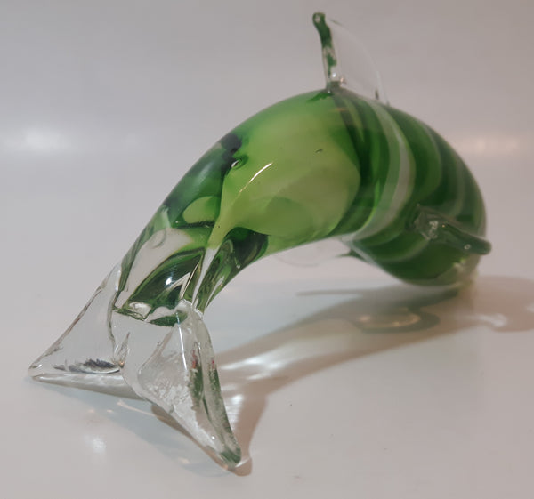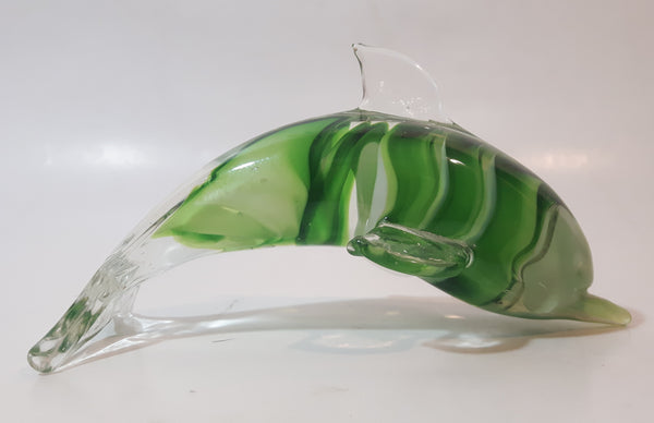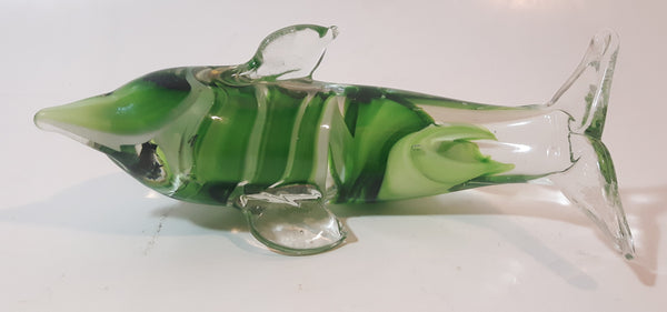 Art Glass Clear and Green 5 3/4" Long Dolphin Sculpture Ornament