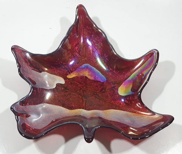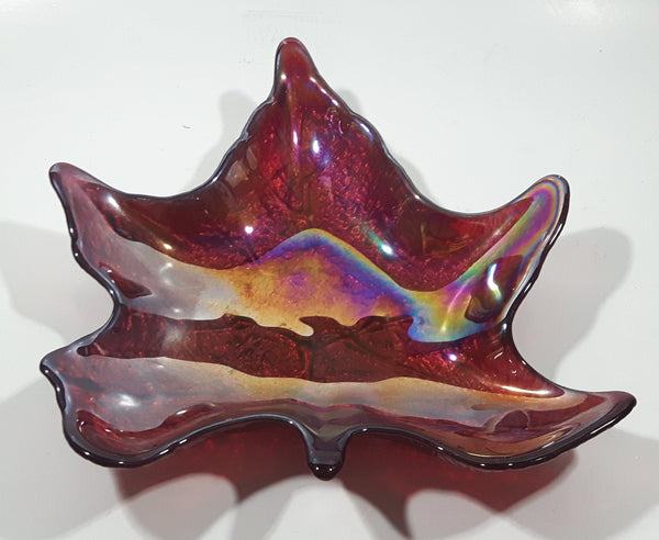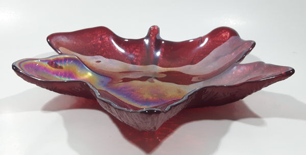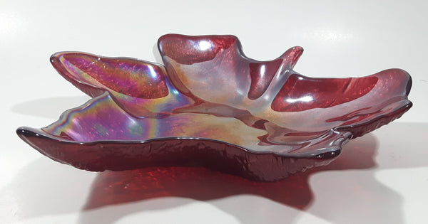 Beautiful Iridescent Pink Magenta Rainbow Maple Leaf Shaped Candy Dish Table Center Piece