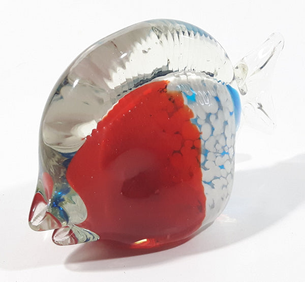 Clear Red White Blue Tropical Fish 4 3/4" Tall Blown Art Glass Sculpture