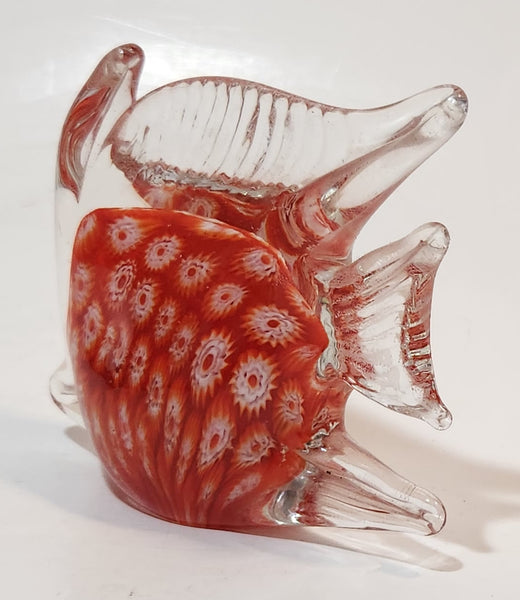 Clear Red White Tropical Angel Fish 4 1/2" Long Blown Art Glass Sculpture