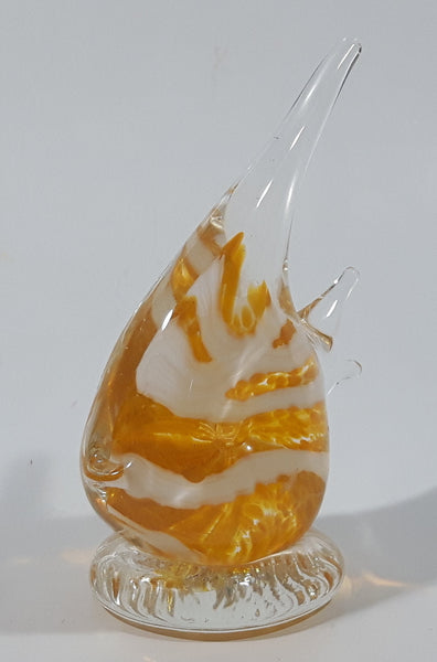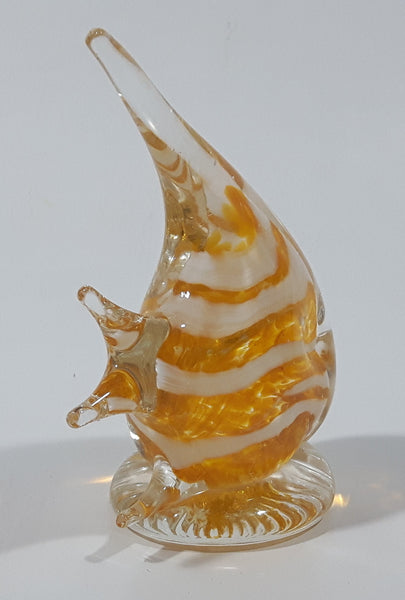 Clear White Yellow Tropical Angel Fish 3 1/2" Tall Blown Art Glass Sculpture