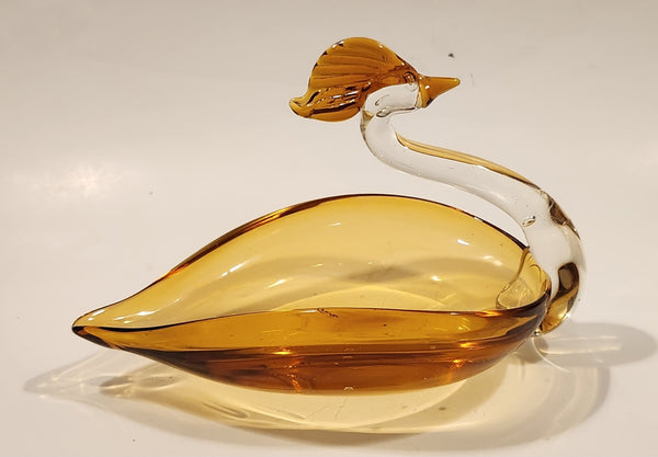 Crowned Crane Swan Bird Amber Art Glass Candy Dish