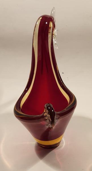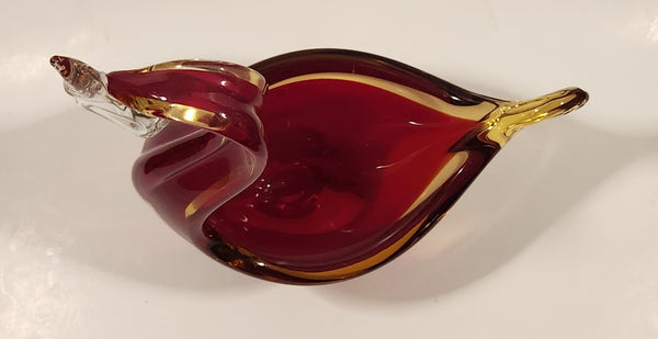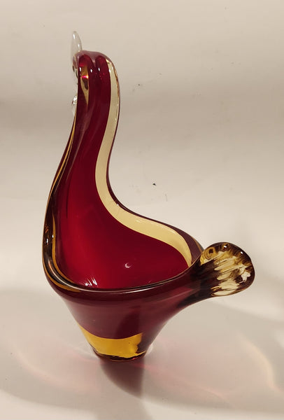 Crowned Crane Swan Bird Blood Red and Amber Art Glass Candy Dish
